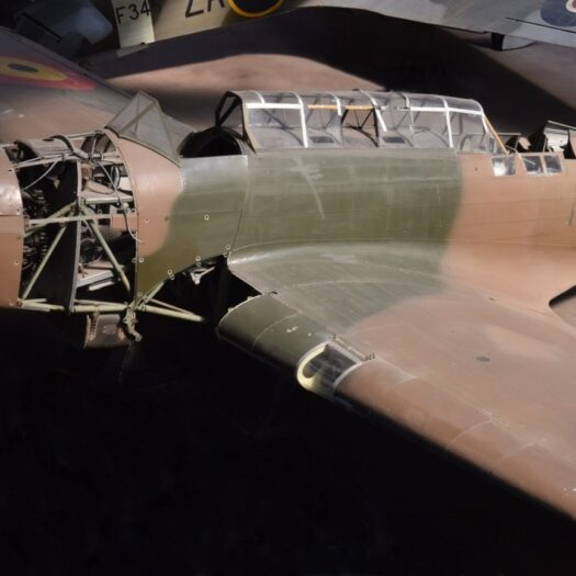 Avion de reconnaissance et bombardier léger – Royaume-Uni – Premier vol en mars 1936 – Vit. Max. 388 km/h – En service à l’Aéronautique Militaire Belge de 1937 à 1940 – Entre au musée en 1990.